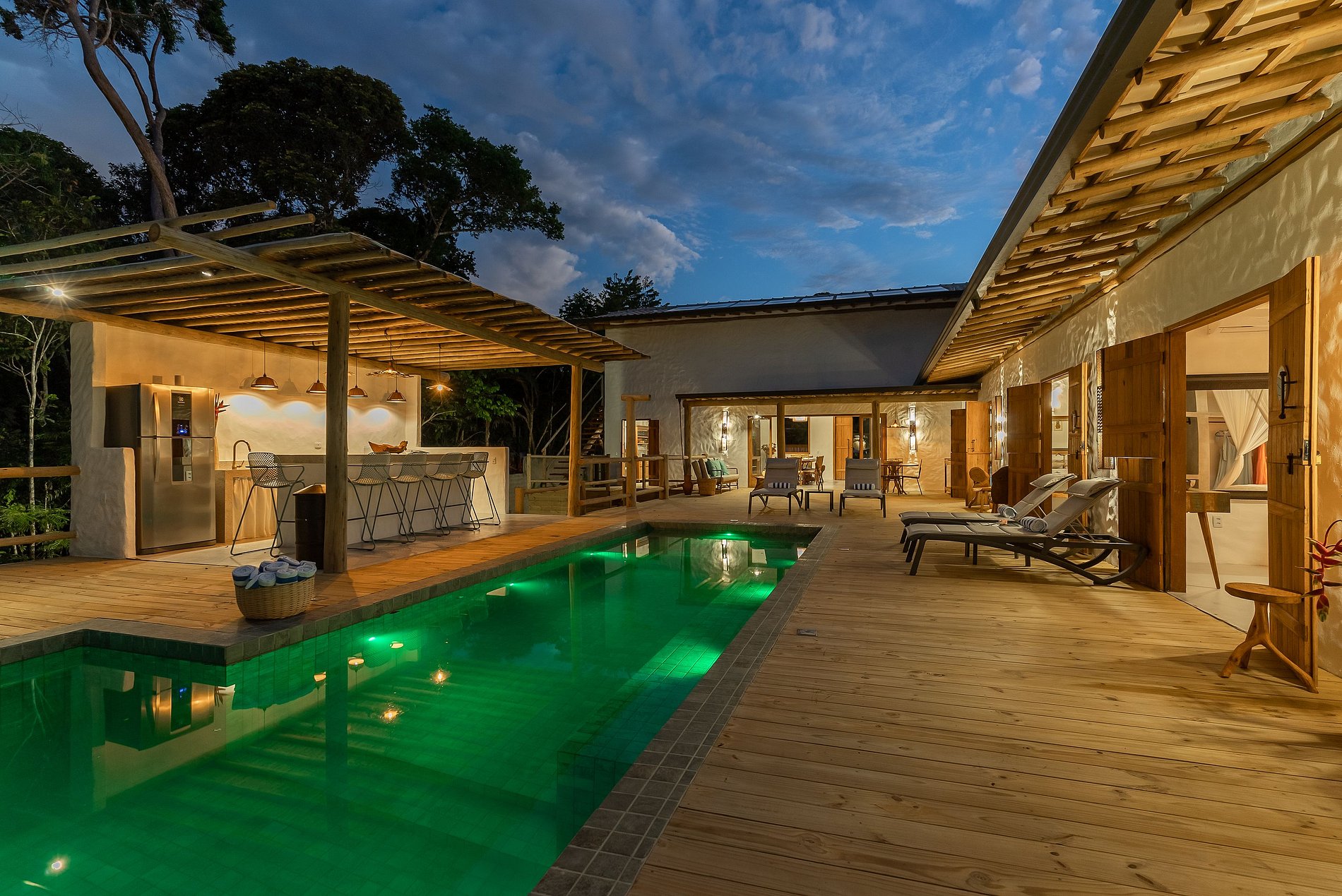 A Casa 5 Elementos é uma casa de aluguel por temporada em Trancoso que disponibiliza arrumadeira inclusa no valor da diária e uma cozinheira que pode ser contratada a parte. A casa foi construída pensando em você, para ser muito mais do que apenas um lugar para se hospedar. Queremos que nossa casa seja seu refúgio, um espaço para você se reconectar consigo mesmo e com a natureza. Ideal para famílias e grupos de amigos.