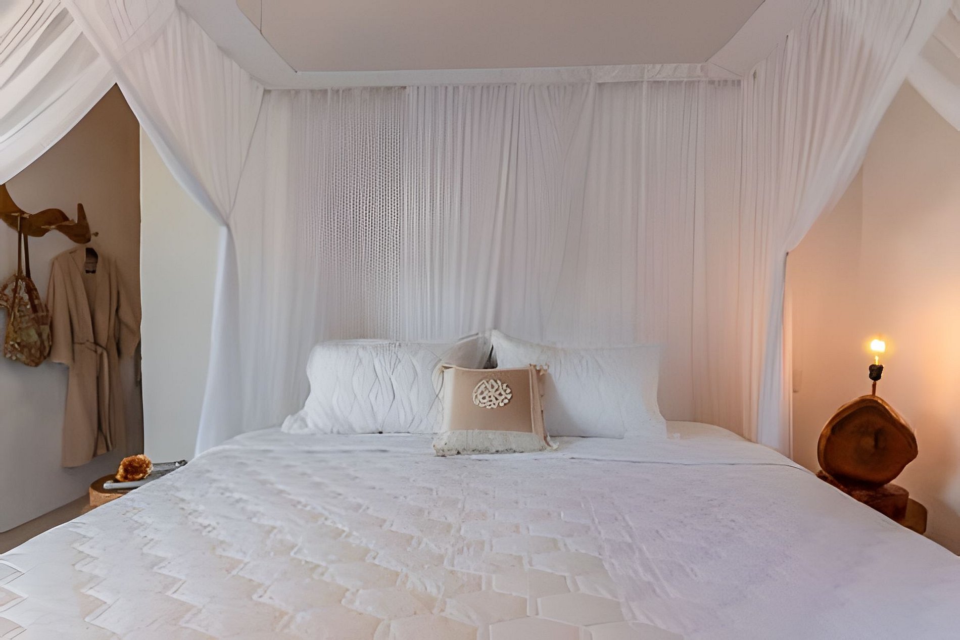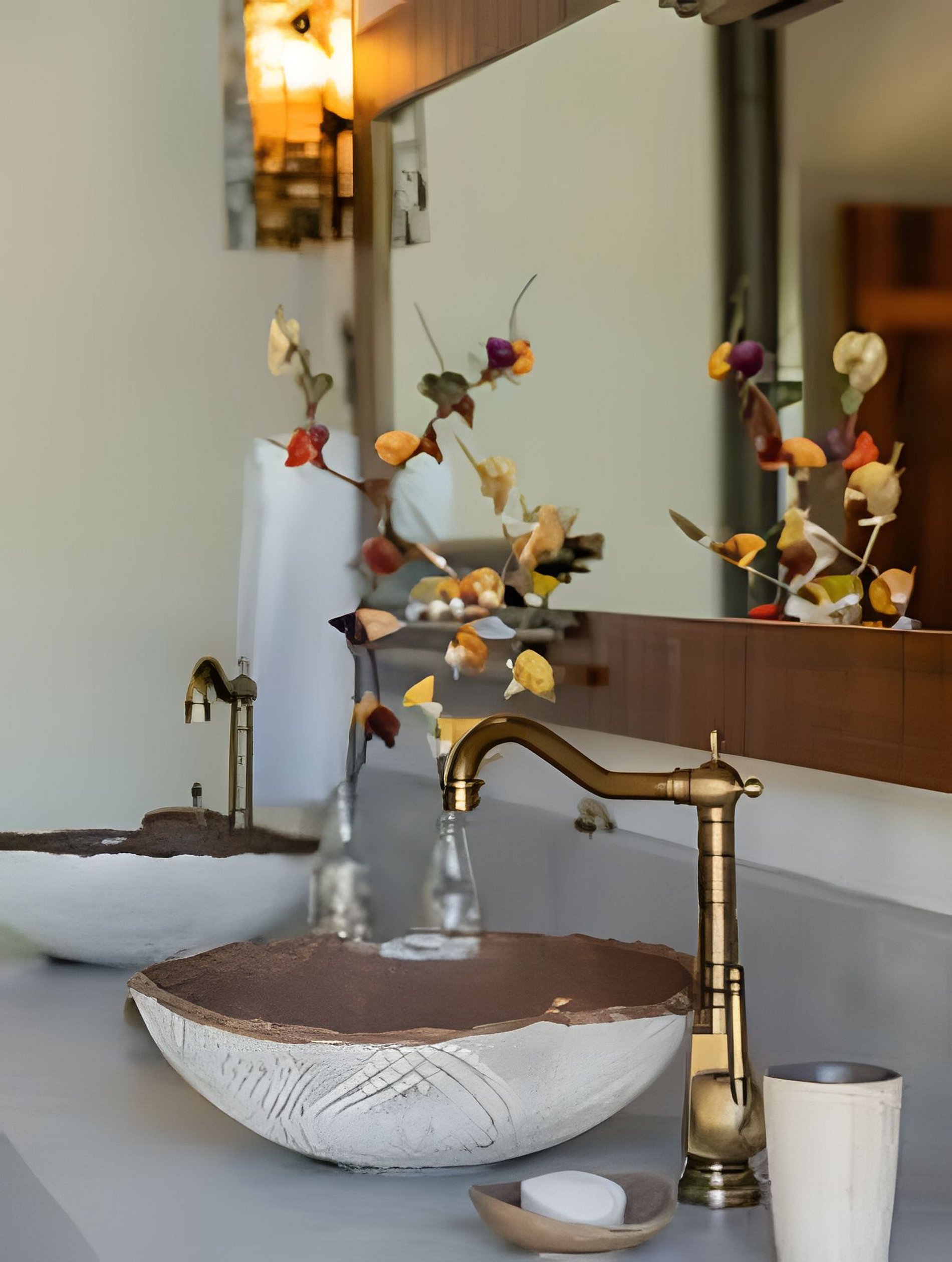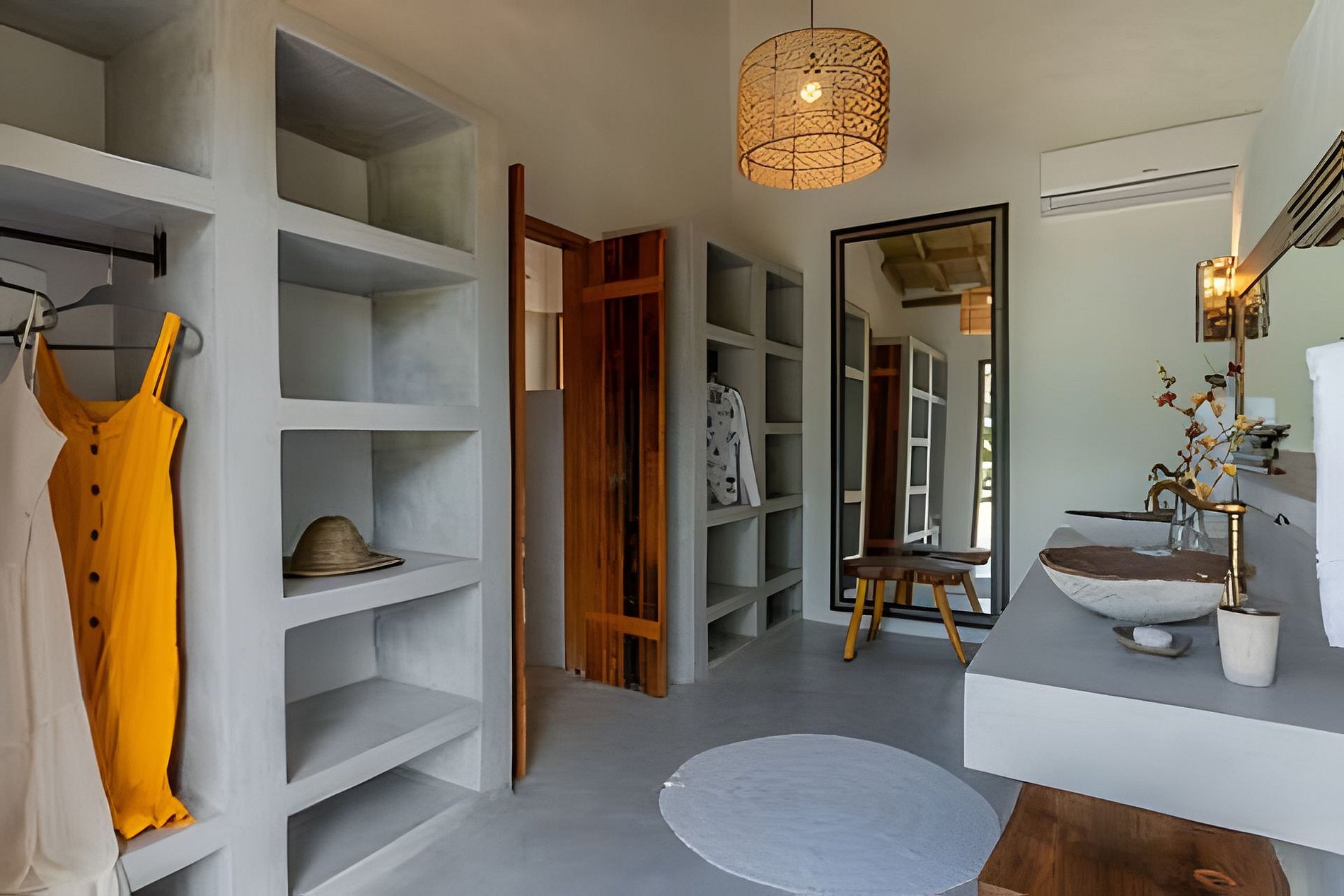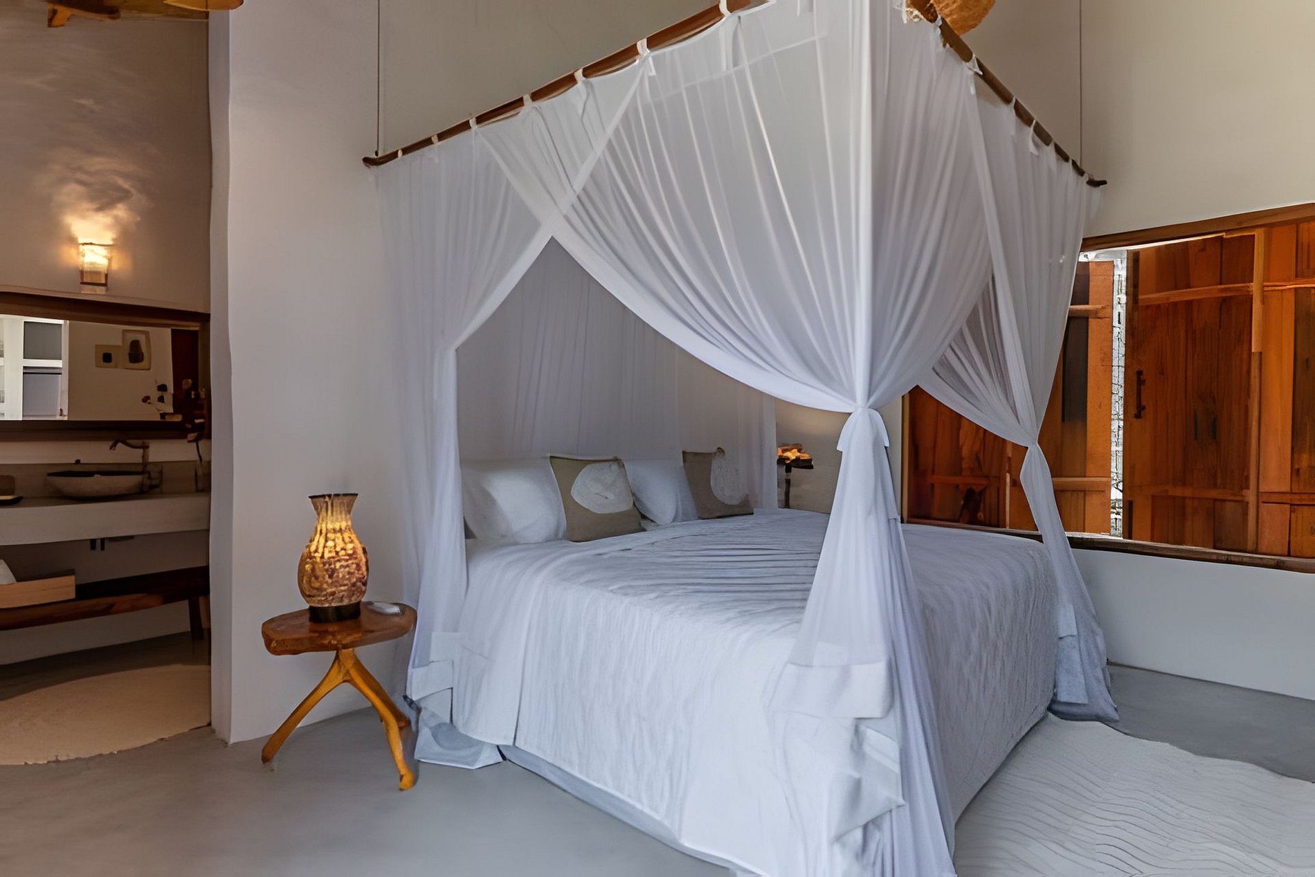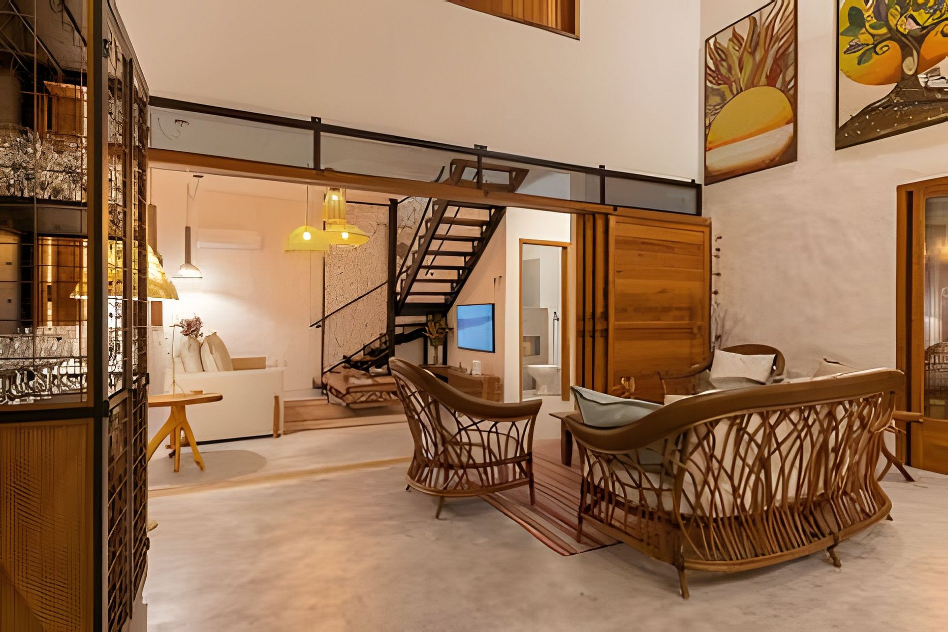 Estilo rústico sofisticado (reboco Santa Fé) e decoração autoral que valoriza o artesanato brasileiro de vários estados. Perfeita para aluguel de temporada em Trancoso, com conforto de hotel e privacidade de casa.